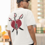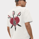 Camiseta de manga corta gruesa urbana con el diseño de Tres de Espadas. Resistente y cómoda. Color blanco roto.Incluye: