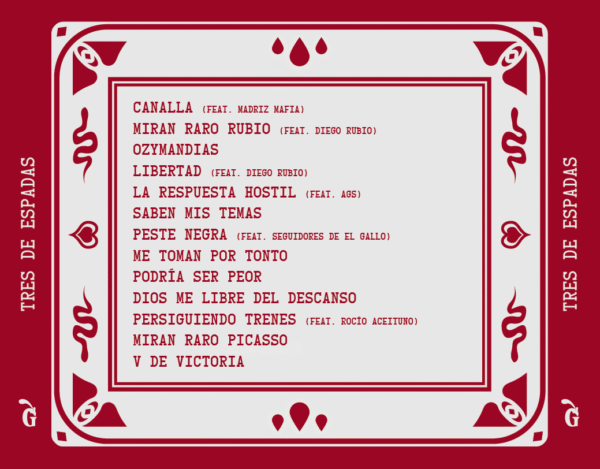 Hazte con una copia física del disco Tres de Espadas de El Gallo. Contiene «Saben mis Temas» y «V de Victoria» entre otros.